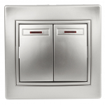 Выключатель Intro Plano 1-105-03 двухклавишный с подсветкой, 10А-250В, IP20, СУ, алюминий