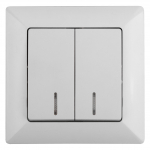 Выключатель Intro Solo 4-105-01 двухклавишный с подсветкой, 10А-250В, IP20, СУ, белый
