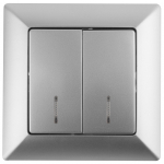 Выключатель Intro Solo 4-105-03 двухклавишный с подсветкой, 10А-250В, IP20, СУ, Solo, алюминий ЭРА Б0053595