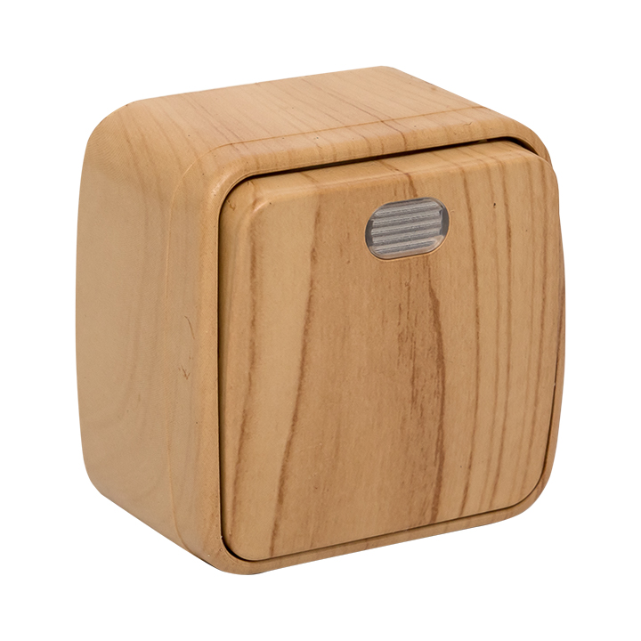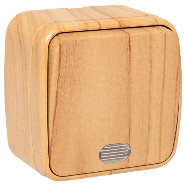 Наименование в каталоге Выключатель 1-клавишный ОП Минск 10А с индикатором светлое дерево