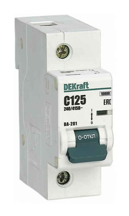 Описание Автоматический выключатель серии ВА-201 DEKraft, 1P, номинальный ток 125 А, характеристика C, отключающая способность 10 кА, ширина - 1,5 мод. х 18мм. Монолитная лицевая панель обеспечивает безопасную эксплуатацию аппарата. Окошко-индикатор всегда показывает состояние аппарата вне зависимости от положения рукоятки управления. Двухпозиционная защелка облегчает монтаж выключателя. Клеммы рассчитаны на подключение проводников сечением до 35 кв.мм.