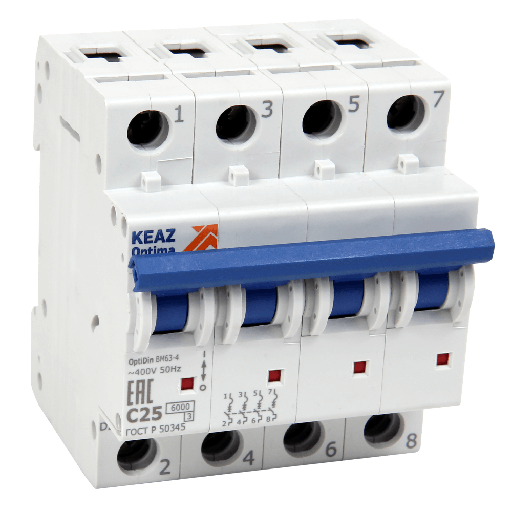 Выключатель автоматический четырехполюсный 2А B 6кА AC OptiDin BM63-4B2-УХЛ3-РЕГ КЭАЗ 280431
