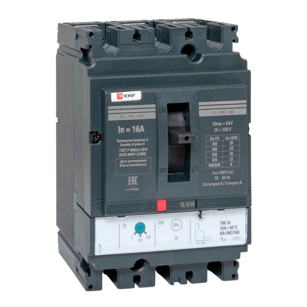 Наименование в каталоге Выключатель автоматический трехполюсный ВА-99C 160/16А 3P 36кА