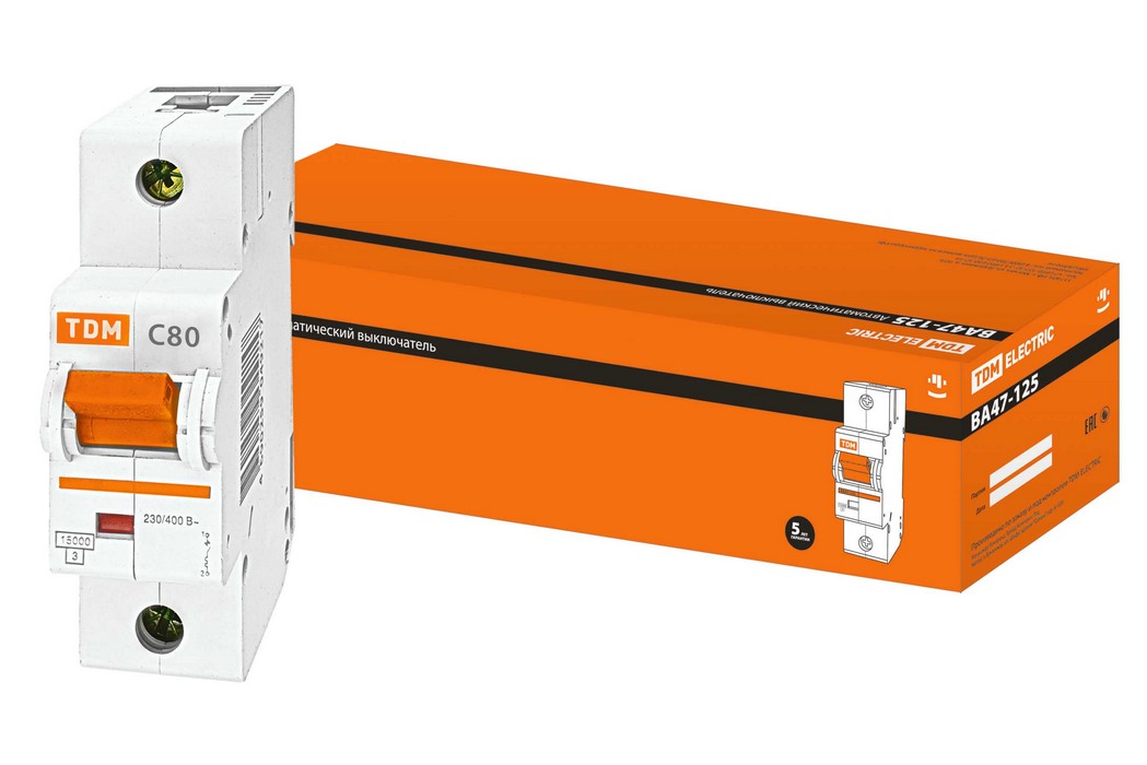 Выключатель автоматический ВА47-125 однополюсной 80А 15кА характеристика С TDM ELECTRIC SQ0208-0058