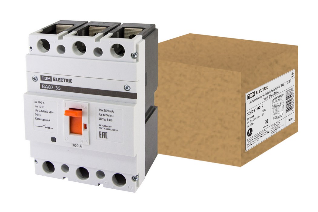 Полные технические характеристики Выключатель автоматический ВА87-35 3Р 100А 25кА TDM ELECTRIC SQ0751-0012