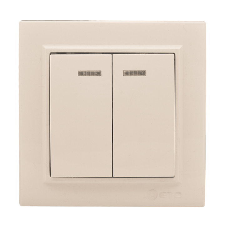 Наименование в каталоге Выключатель двухклавишный СП Минск с индикатором 10А бежевый