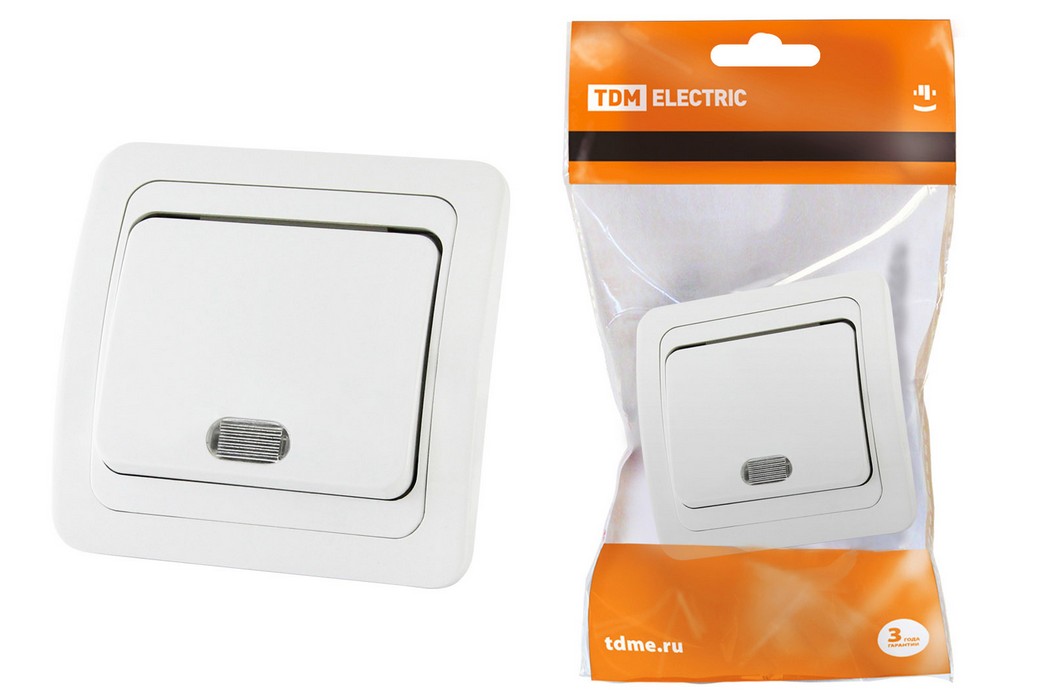 Выключатель одноклавишный с подсветкой 10А белый Валдай TDM ELECTRIC SQ1804-0004