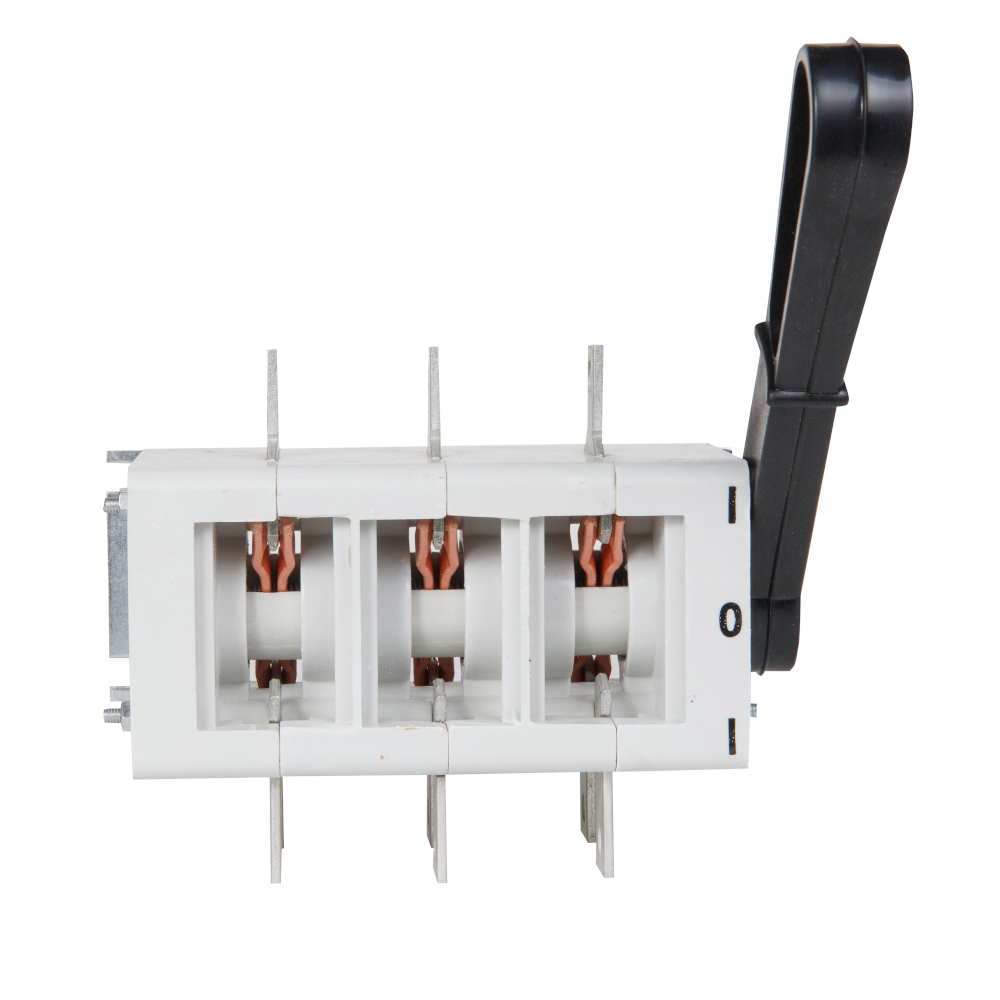 Описание Выключатель-разъединитель 3 полюсный на номинальный ток 630 А, в котором установлена несъемная рукоятка.