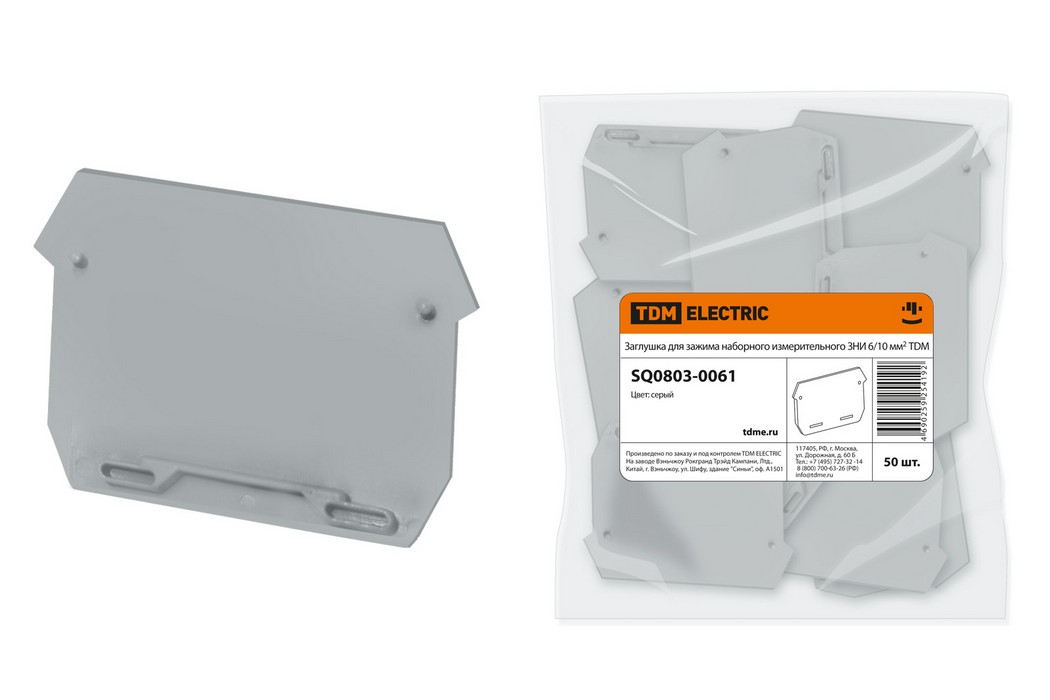 Полные технические характеристики Заглушка для зажима наборного измерительного ЗНИ 6/10 мм2 TDM ELECTRIC SQ0803-0061