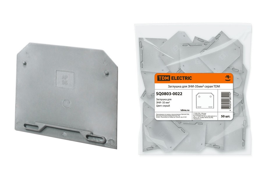 Полные технические характеристики Заглушка для ЗНИ-35мм2 серая TDM ELECTRIC SQ0803-0022