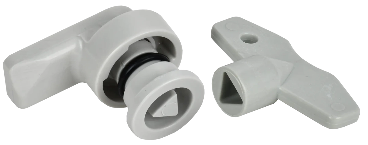 Описание Замок пластиковый под трехгранный ключ. Предназначен для запирания электрических сборок и шкафов, с целью защиты от несанкционированного проникновения и для защиты сборки от попадания пыли и влаги.