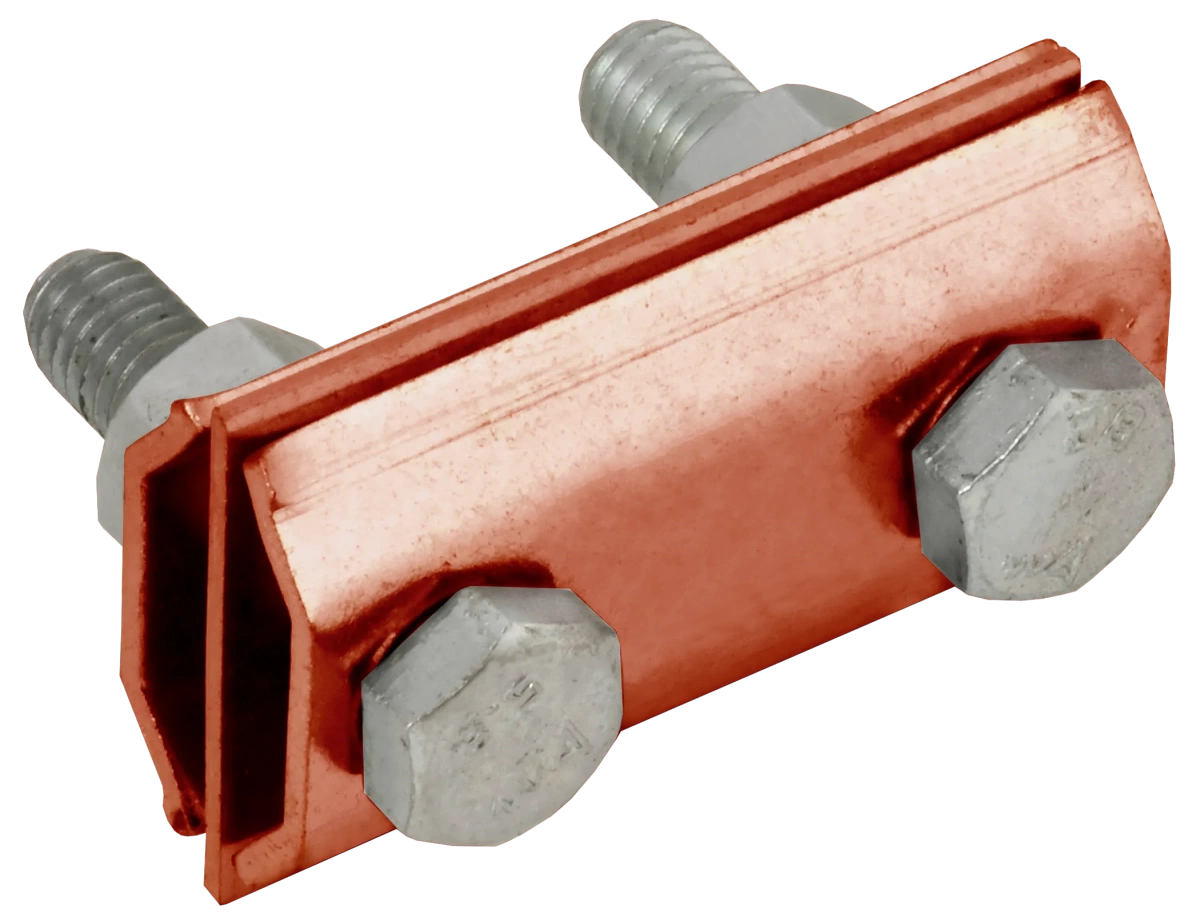 Описание Зажим соединительный сквозной двойной пруток-пруток предназначен для соединения круглых проводников. Способен зажимать проводники как соосно, так и параллельно друг другу. Состоит из трёх пластин и зажимных болтов с гайками. Двухрядная конструкция соединителя позволяет зажимать до 4-х проводников в соединении. Материал корпуса - медь.