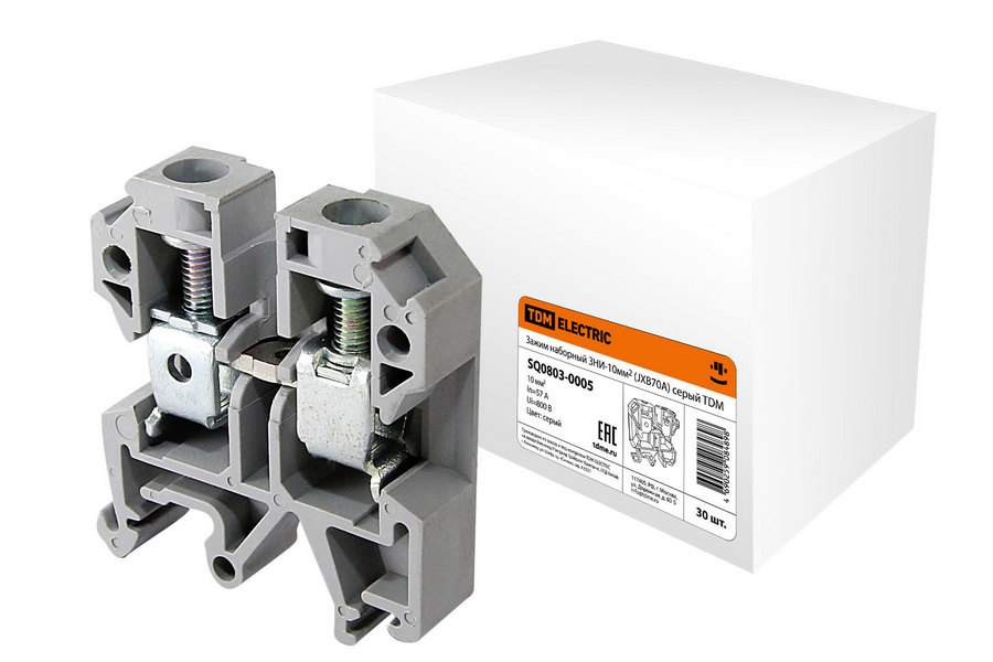 Полные технические характеристики Зажим наборный ЗНИ-10мм2 (JXB70А) серый TDM ELECTRIC SQ0803-0005