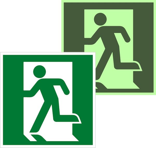 Наименование в каталоге Знак эвакуационный E 01-01 Выход здесь (левосторонний) 200х200 мм, металл с покрытием фотолюминесцентным ГОСТ Р 12.4.026-2001