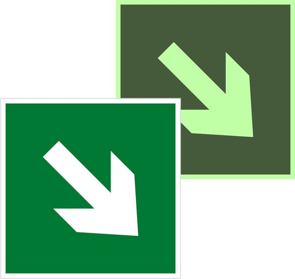 Наименование в каталоге Знак эвакуационный E 02-02 Направляющая стрелка под углом 45 200х200 мм, пластик с покрытием фотолюминесцентным ГОСТ Р 12.4.026-2 001