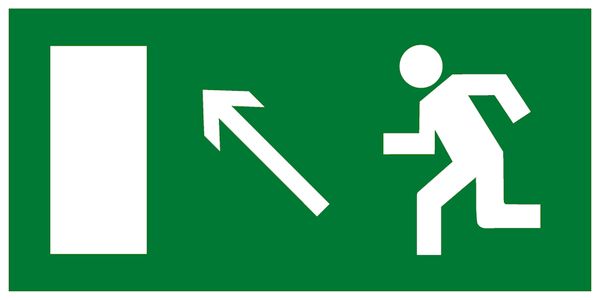 Наименование в каталоге Знак эвакуационный E 06 Направление к эвакуационному выходу налево вверх 150х300 мм, пластик ГОСТ Р 12.4.026-2001