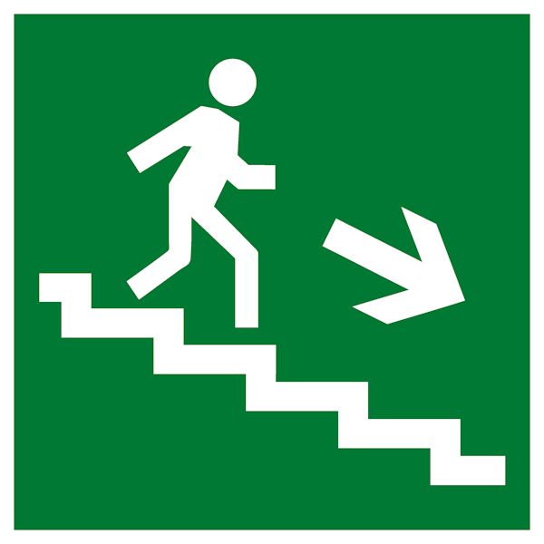 Наименование в каталоге Знак эвакуационный E 13 Направление к эвакуационному выходу по лестнице вниз 200х200 мм, пластик ГОСТ Р 12.4.026-2001