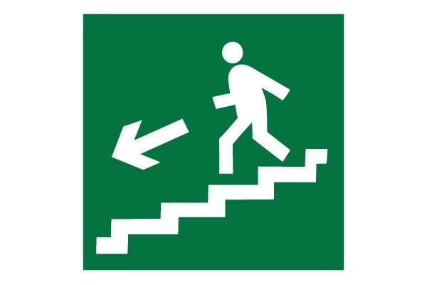 Наименование в каталоге Знак эвакуационный E 14 Направление к эвакуационному выходу по лестнице вниз 200х200 мм, пластик ГОСТ Р 12.4.026-2001