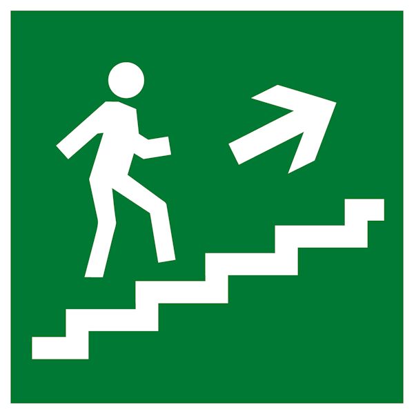 Наименование в каталоге Знак эвакуационный E 15 Направление к эвакуационному выходу по лестнице вверх 200х200 мм, пластик ГОСТ Р 12.4.026-2001