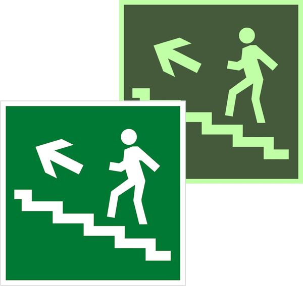 Наименование в каталоге Знак эвакуационный E 16 Направление к эвакуационному выходу по лестнице вверх 200х200 мм, пленка самоклеящаяся с фотолюминесцентным покрытием ГОСТ Р 12.4.026 -2001