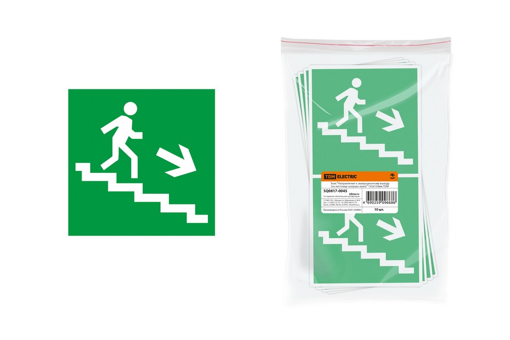 Полные технические характеристики Знак Направление к эвакуационному выходу (по лестнице направо вниз) 150х150мм TDM ELECTRIC SQ0817-0045